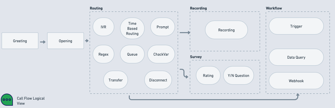 Any customer call goes through flow steps before being connected to an agent. A sample flow may be for example as the following: