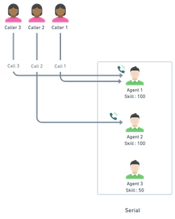 - Serial: The call will ring sequentially, targeting all agents who have the highest skill level.