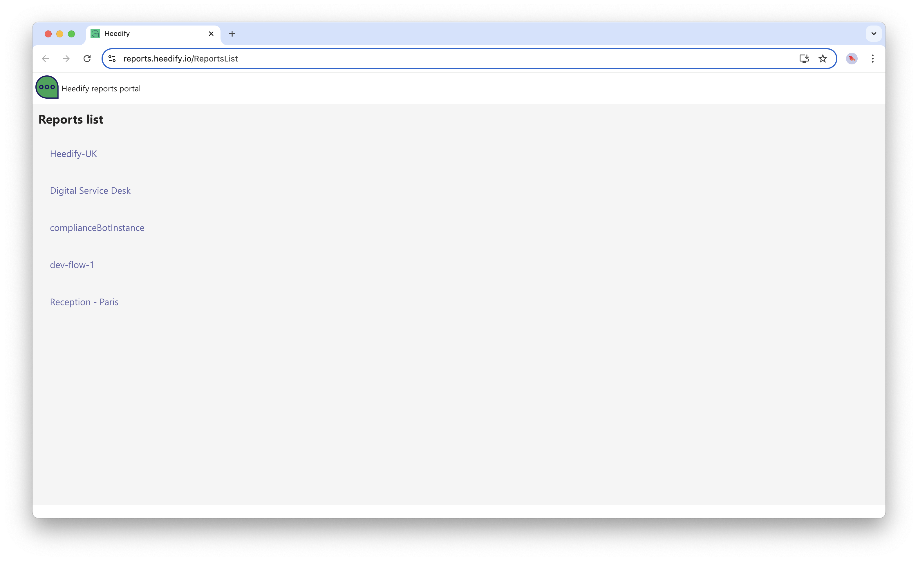 To access to the portal, open your browser and navigate to reports.heedify.io and enter credentials to log in.